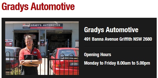 Gradys Automotive take great pride in offering their clients personalised, and friendly service at all times. Conveniently located in Griffith, the business is a member of the Repco Auto Tech training program, ensuring their technicians are kept fully up to date with modern vehicle repair methods. Gradys Automotive has over 20 years experience and a wealth of knowledge servicing all makes and models, including commercial fleet vehicles and European vehicles. As a Repco Authorised Service centre, they have a commitment to high quality workmanship, ensuring the very best in automotive care.